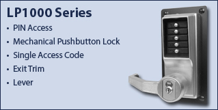 - Rim Exit Device: Compatible with most leading brands of exit devices - (Exit Device and Mounting hardware not included). Exit Device may be "dogged" without affecting the LP1000 - See Compatible Exit Devices below
