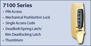 The Simplex 7000 can also be used alone, or with another lock in residential applications. Optional model features include spring latch, deadbolt, key override and panic exit device. The rugged all-metal construction is weather resistant, providing added strength and durability.